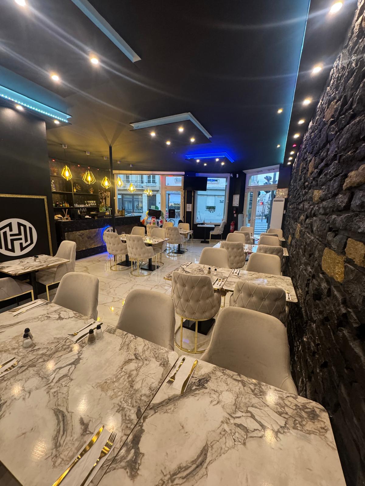 - Salle intérieure de 65 m² : Ambiance lounge, décoration soignée et lumière tamisée pour une atmosphère chaleureuse et conviviale. Elle peut recevoir jusqu’au 35 personnes assises et 50-55 personnes pour évènements debout.
